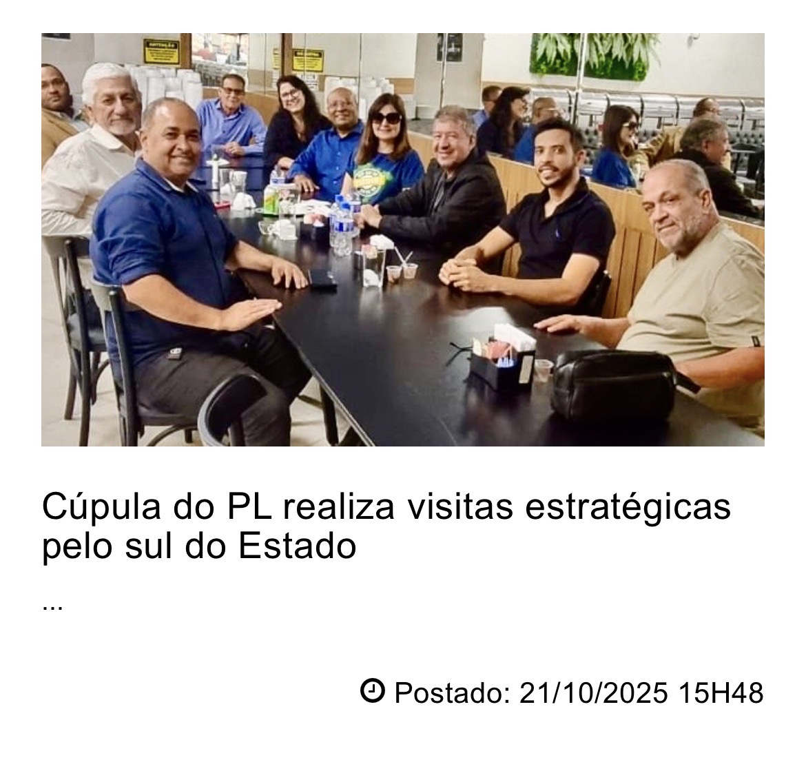 Cúpula do PL realiza visitas estratégicas pelo sul do Estado