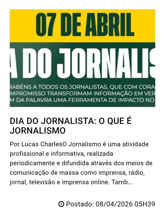 Por Lucas CharlesO Jornalismo é uma atividade profissional e informativa, realizada periodicamente e difundida através dos meios de comunicação de massa como imprensa, rádio, jornal, televisão e imprensa online. Tamb...