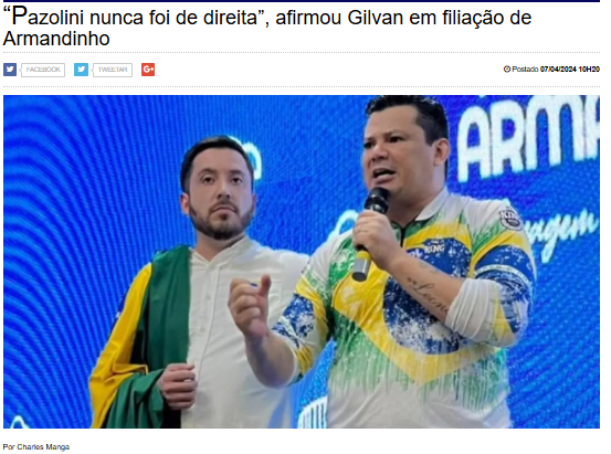 Prefeito de Vitória e figura nacionalmente conhecida, Pazolini tornou-se alvo de questionamentos públicos quando o deputado Gilvan da Federal declarou que ele “nunca foi e nunca será de direita”.