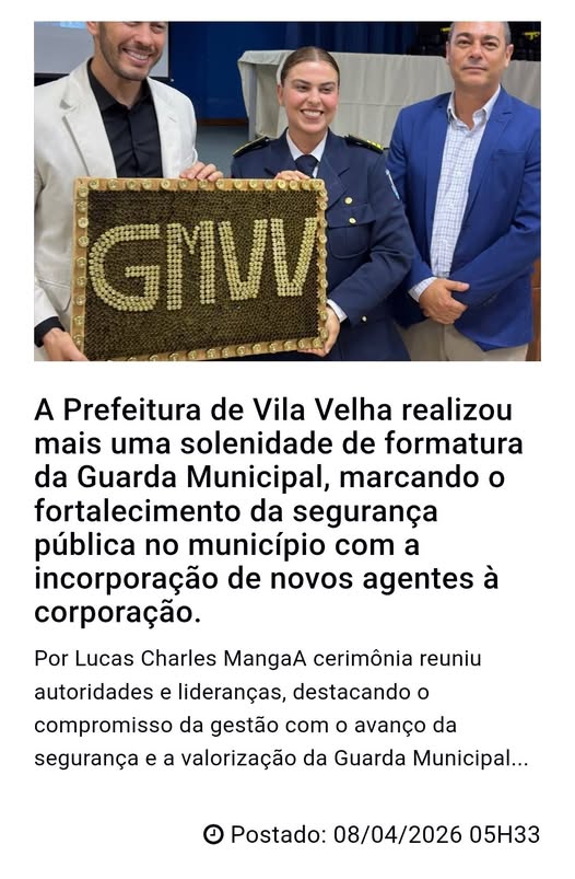 A Prefeitura de Vila Velha realizou mais uma solenidade de formatura da Guarda Municipal, marcando o fortalecimento da segurança pública no município com a incorporação de novos agentes à corporação.