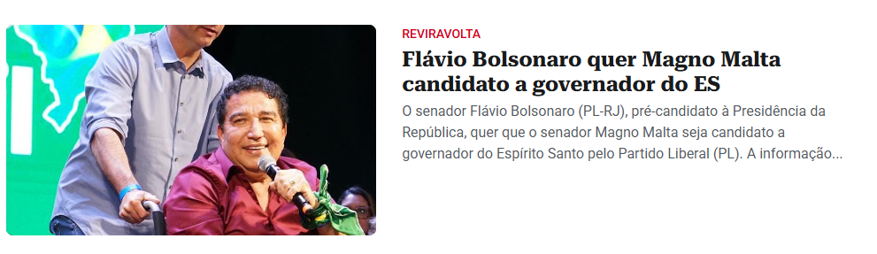 Por Charles Manga - Jornal Ativa ESAssessoria de Magno confirma: “Caso o convite de Flávio se concretize, ele estará pronto para aceitar”. O movimento, pode distanciar o PL de Pazolini no Estado. O senador Flávio Bolsonaro (PL-RJ), p...
