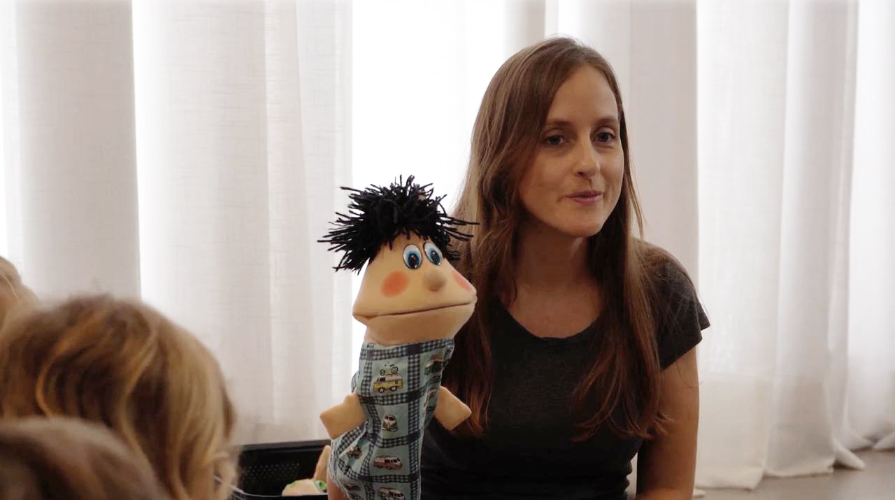 As aulas ocorrem sempre com louvor e acessórios que ajudam as crianças a entenderem.