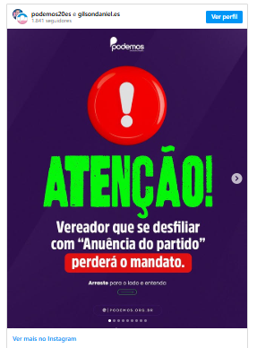 E a advertência não foi à toa. Nos bastidores, especula-se que alguns vereadores do Podemos em Vila Velha preparam-se para disputar vagas na Assembleia Legislativa pelo PSDB, partido presidido pelo prefeito da cidade, Arnaldinho Borgo. De acordo com o que a coluna apurou, nenhum parlamentar da sigla pediu desfiliação formalmente, seja à Executiva municipal ou à nacional e tampouco à Justiça Eleitoral. Mas somente diante da possibilidade, o Podemos publicou um aviso no Instagram, em colaboração com o perfil do Deputado Gilson Daniel.