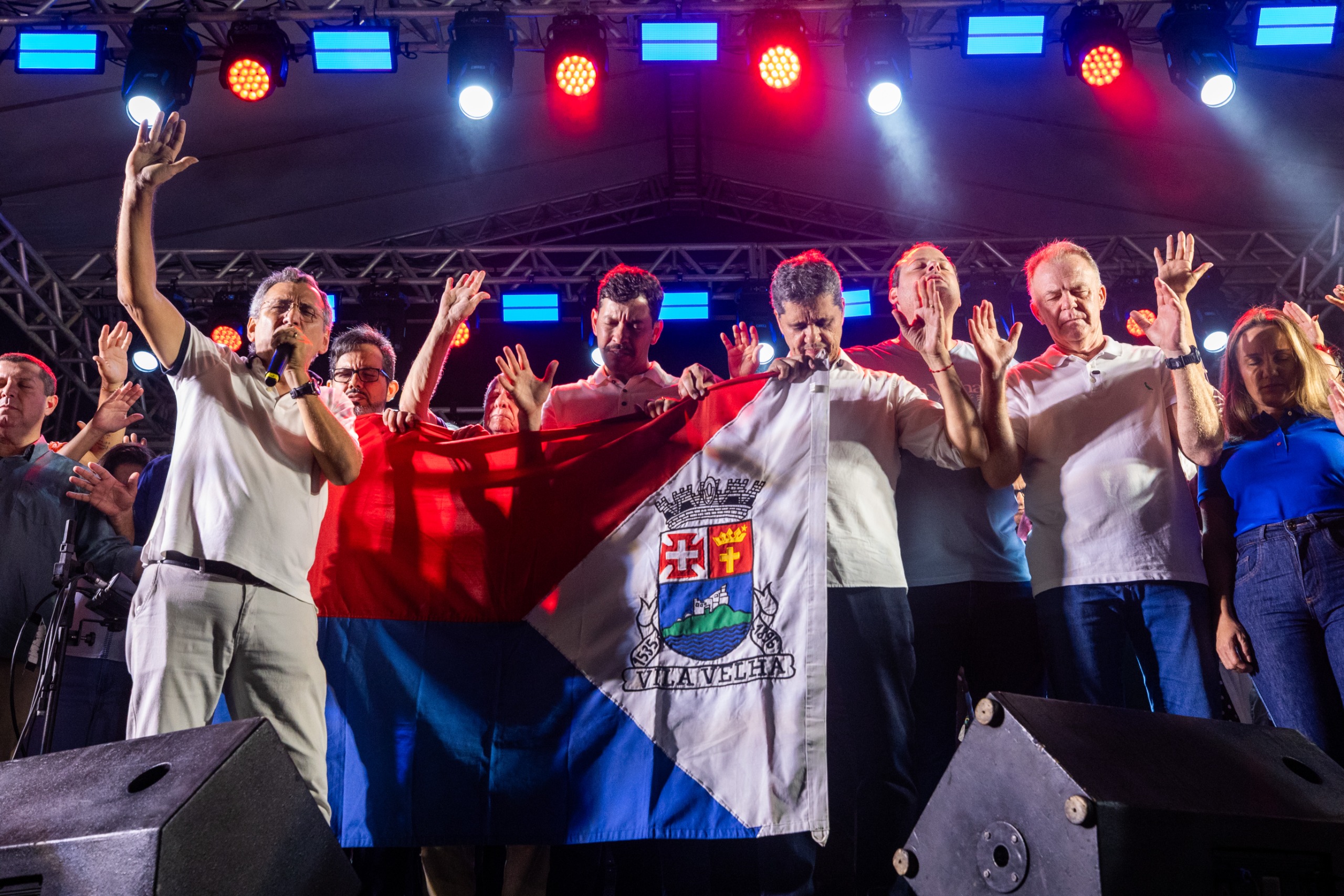 Antes dos pronunciamentos, o pastor Evaldo Gomes conduziu uma oração em favor das autoridades e das famílias capixabas. Reconhecido por sua atuação à frente do tradicional evento Jesus Vida Verão, o líder religioso pediu paz para o Espírito Santo diante de recentes episódios de violência e feminicídio.